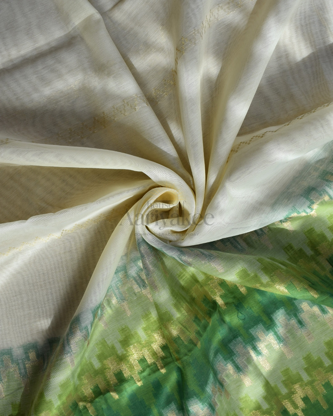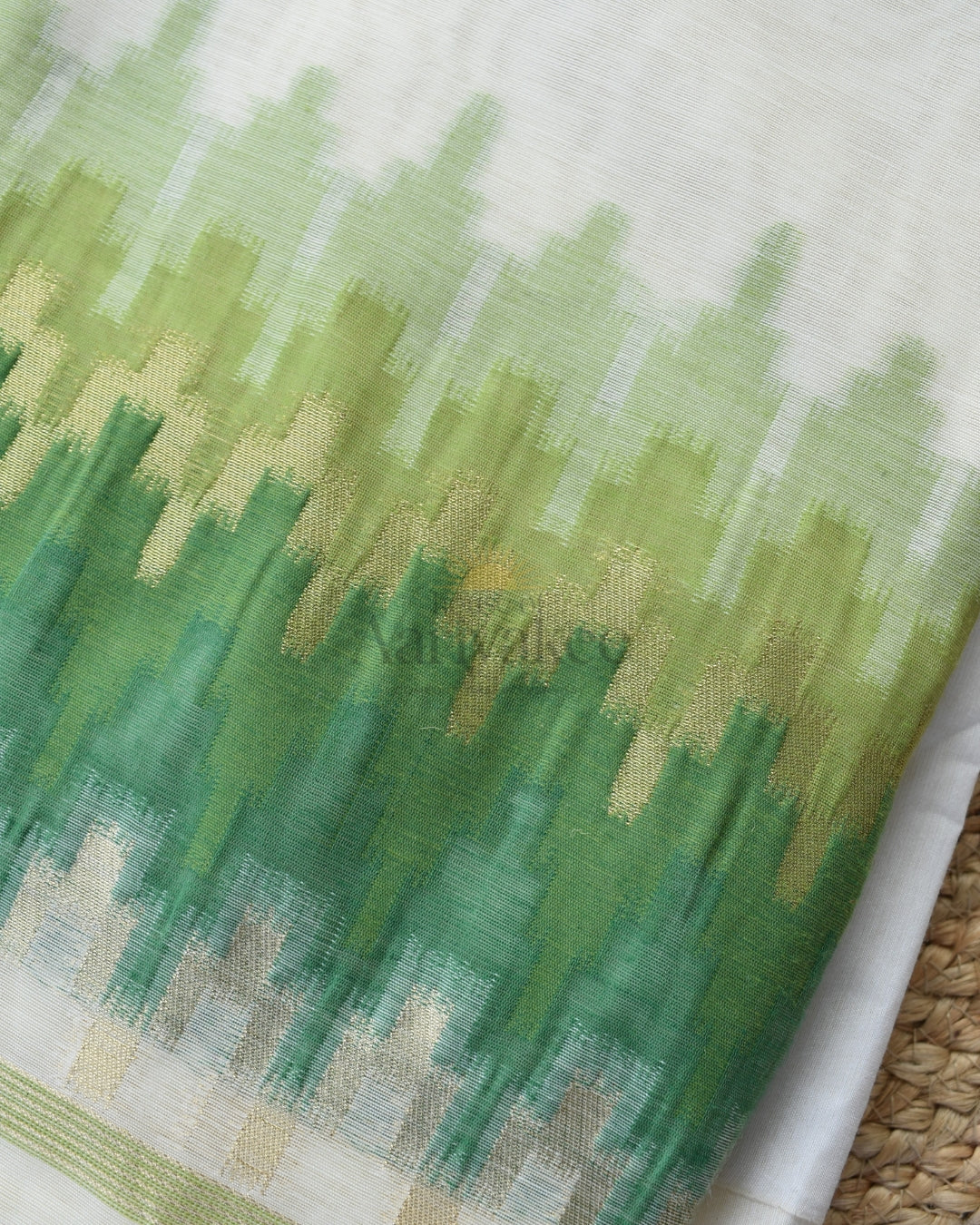 Elegant ikat-style weave in green and gold tones