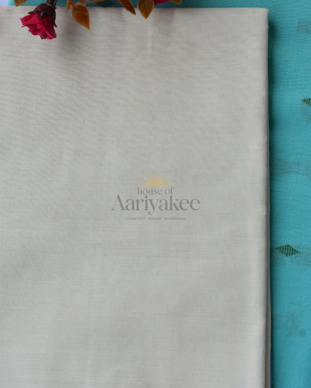 - Top: Aqua blue with handwoven green diamond motifs – 2.5 m