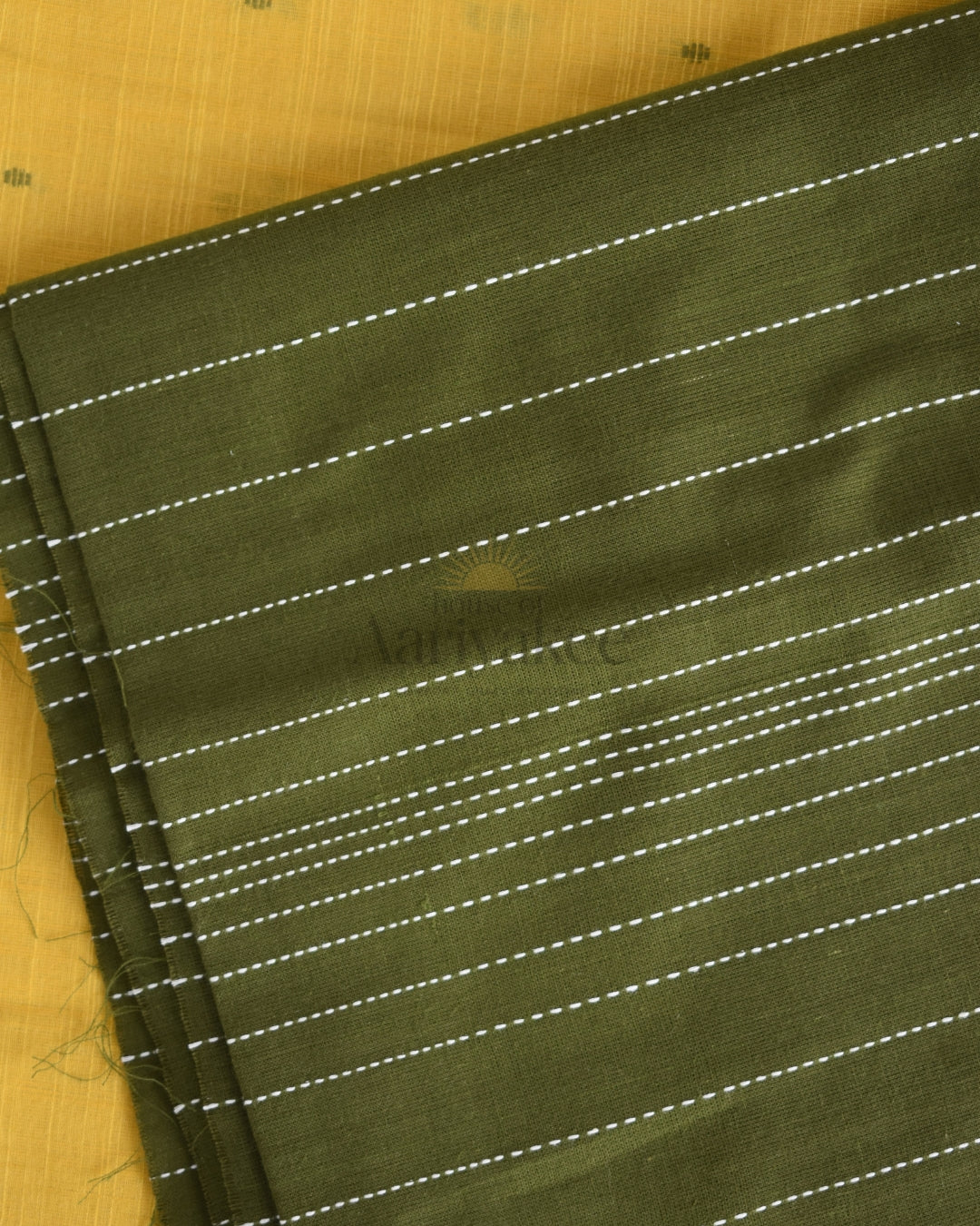 Top: Mustard yellowΒ with green motifs handloom cotton β 2.5 m