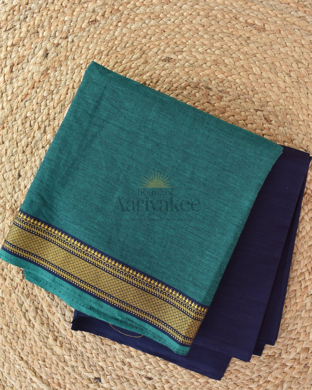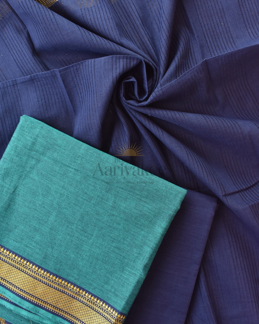 Teal & Navy Blue Handloom Mangalagiri salwar suit